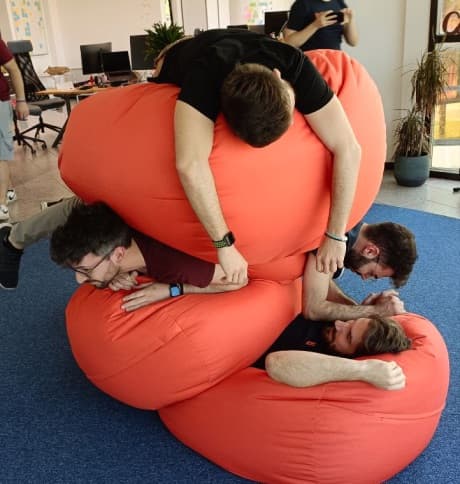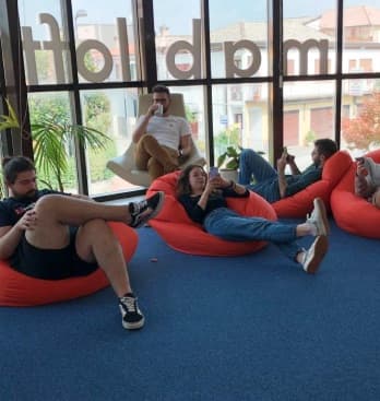 Per dare il massimo nel nostro lavoro crediamo sia necessario creare un ambiente che permetta di sentirsi a proprio agio. I nostri spazi sono in continua evoluzione, come noi. È importante ascoltare le esigenze di ognuno. Per prima cosa il nostro ufficio è fatto di persone. Poi ci sono il biliardino, il tavolo da ping-pong e innumerevoli pouf per la pennichella dopo pranzo.